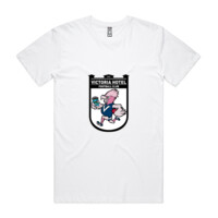 Neck ribbing, side seamed, shoulder to shoulder tape, double needle hems, preshrunk to minimise shrinkage